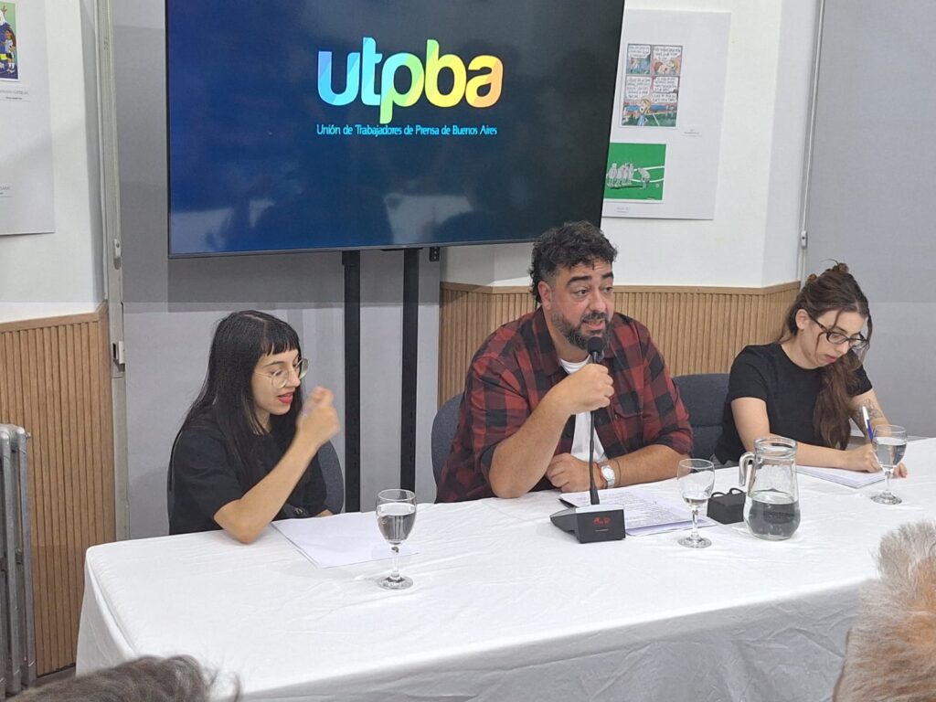 Leandro Torres, secretario general, junto a Valentina Megías y Catalina Camaño Amato, ambas afiliadas a UTPBA, presidieron la Asamblea. Al cierre se realizó un brindis de inicio de año en el que se compartieron experiencias, propuestas y miradas acerca de la comunicación, las nuevas tecnologías y la situación económica y social.